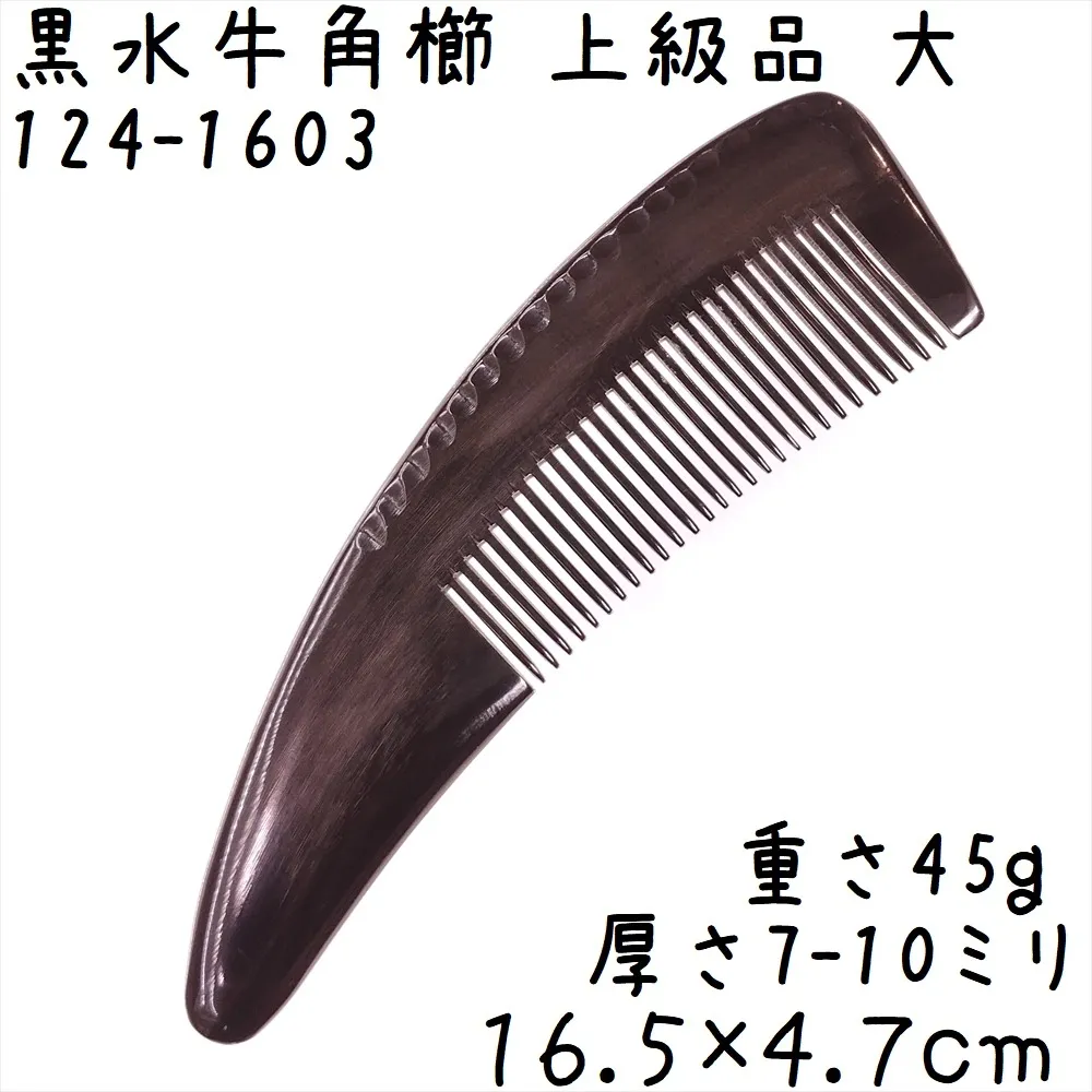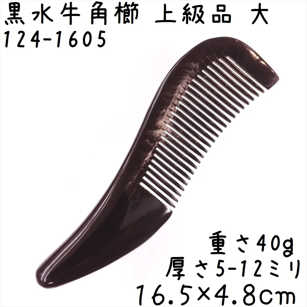 水牛角黒櫛 くし 上級品 16cmC 大03 訳あり 黒水牛角