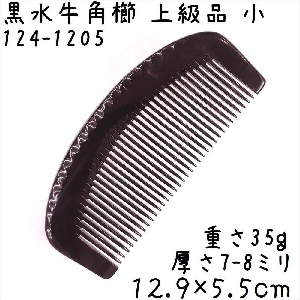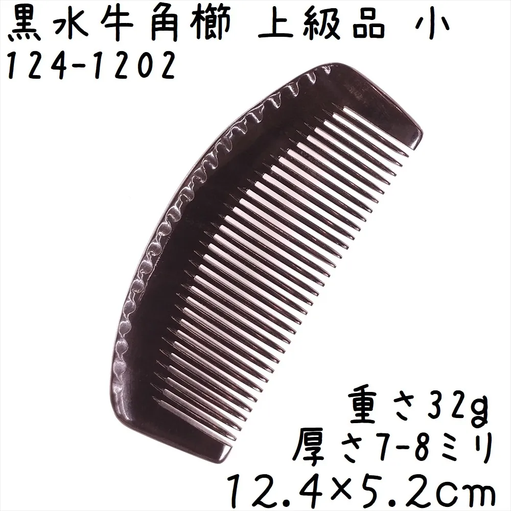 水牛角黒櫛 くし 上級品 12cmA 小02 月型 黒水牛角