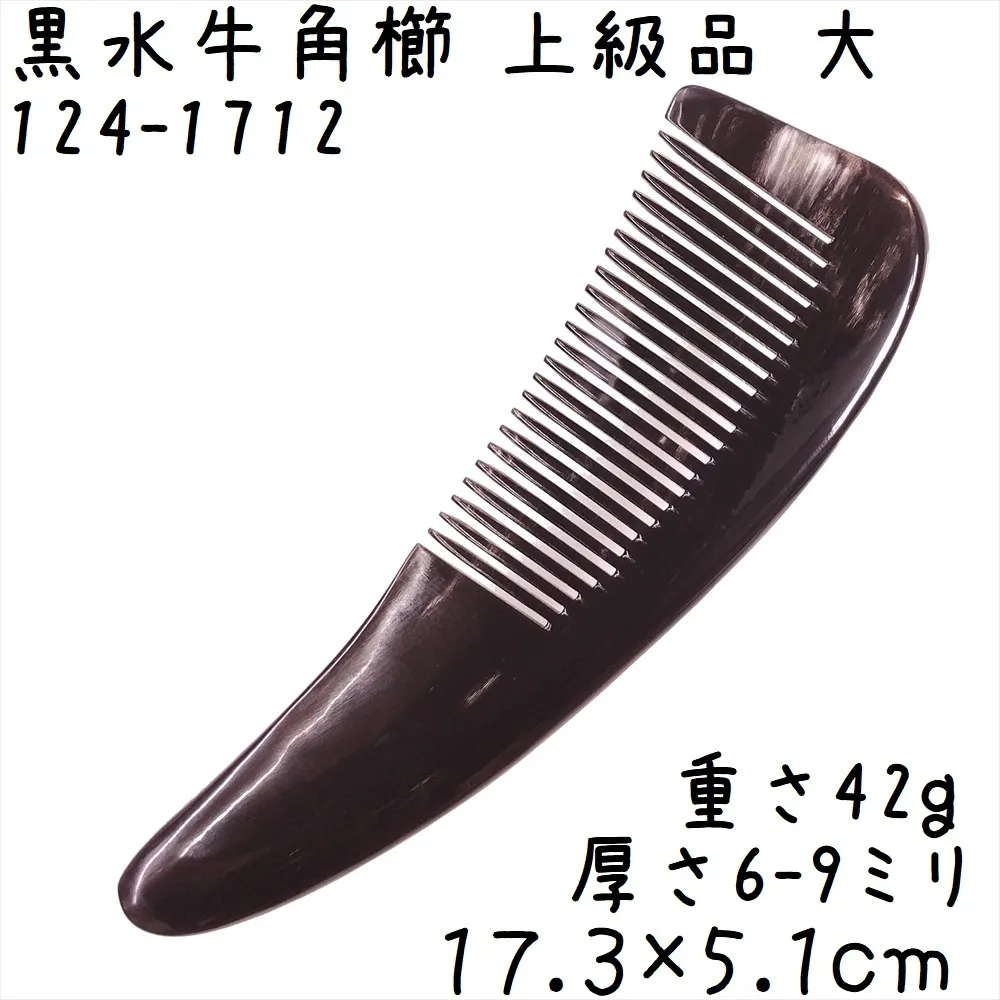 水牛角黒櫛 くし 上級品 17cm 大08A 訳あり 黒水牛角