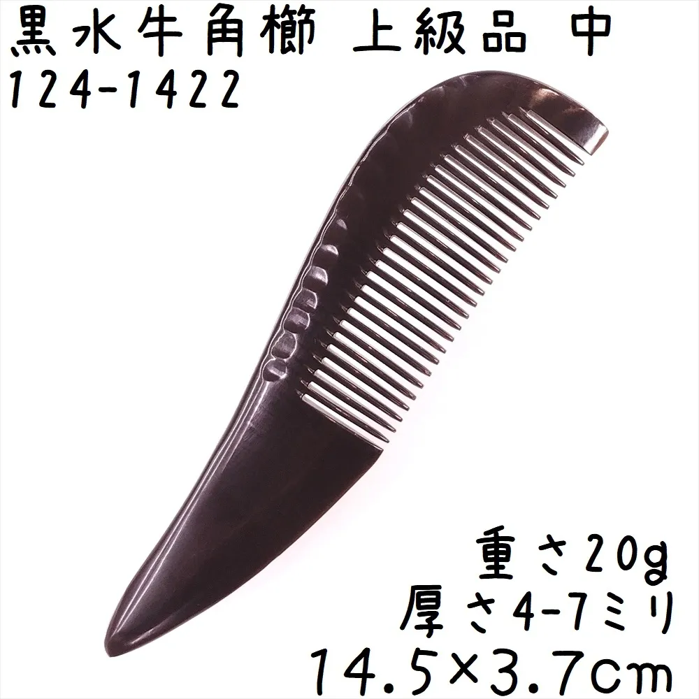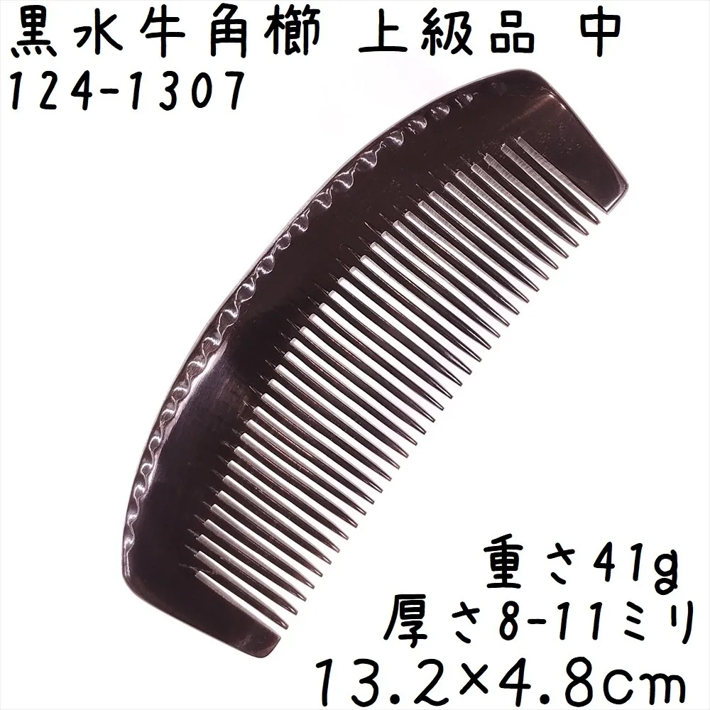 水牛角黒櫛 くし 上級品 13cmA 中06 訳あり 月型 黒水牛角