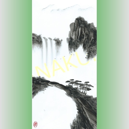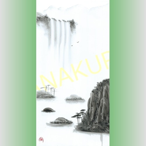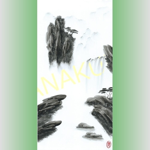 中国 山水画 手描き 中30 手のひらで描いた絵 縦長 30×15cm 手掌画 台紙無し 額無し