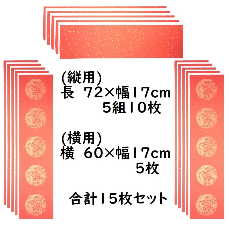 対聯 用紙 五言 長072×幅17cm 紅金龍鳳 縦10枚横5枚セット 中国 宣紙 条幅 書道 対聯用