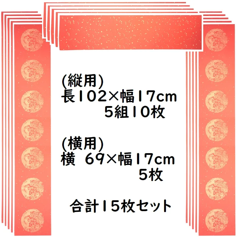 対聯 用紙 七言 長104×幅17cm 紅金無地 縦10枚横5枚セット 中国 宣紙 条幅 書道 対聯用