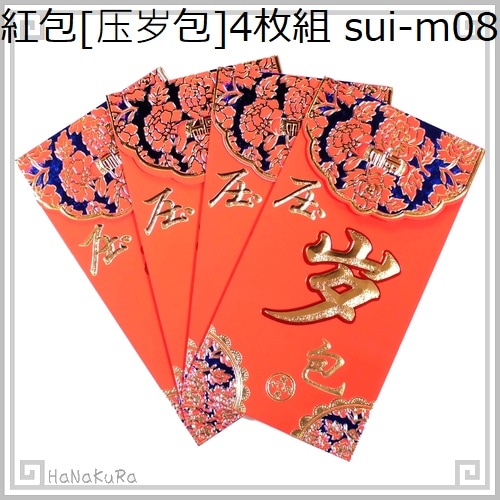紅包 福37(薄手) 金福 円窓 新年快楽 お年玉 4枚 120g/m2