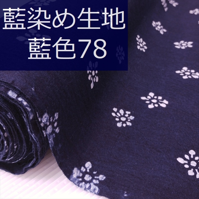 藍染め 生地 幅90cm 藍色78 小花乱 藍印花布 1m単位 綿100% 片面染め ロットNo2306