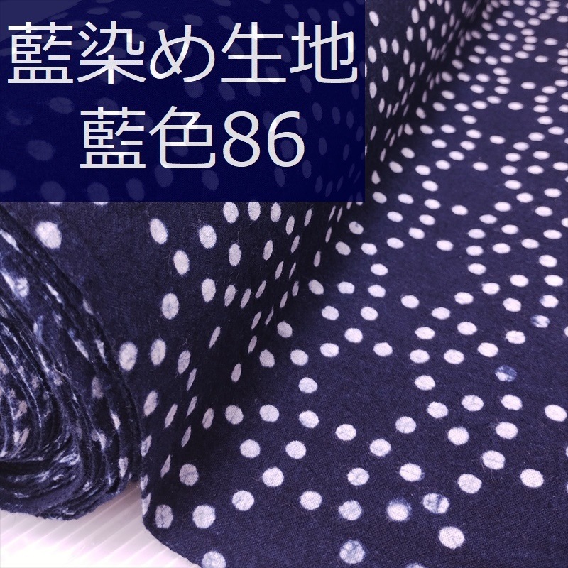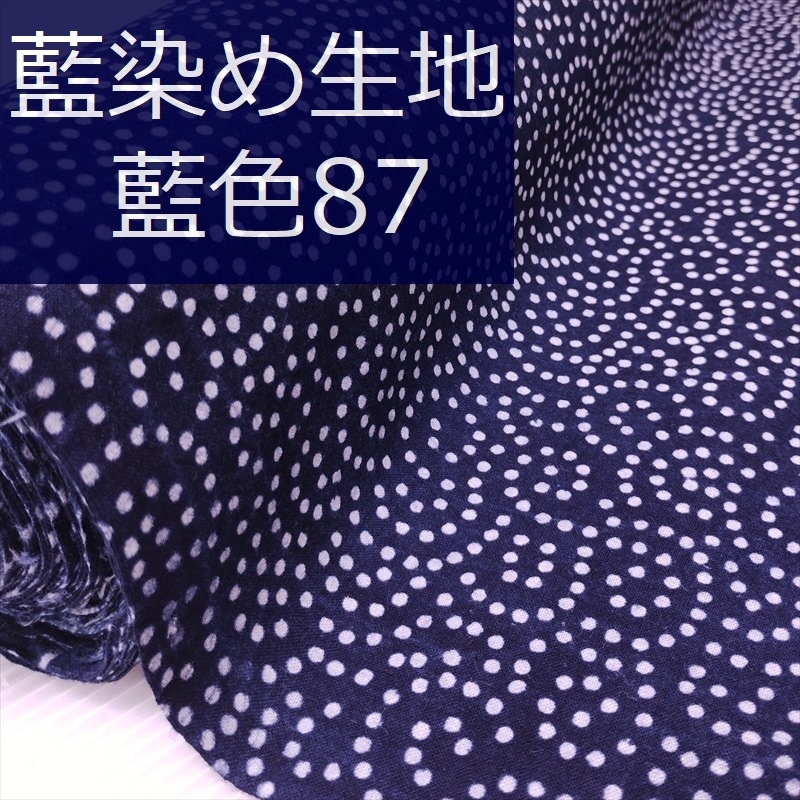 藍染め 生地 幅90cm 藍色86 円点重花 藍印花布 1m単位 綿100% 片面染め ロットNo2306