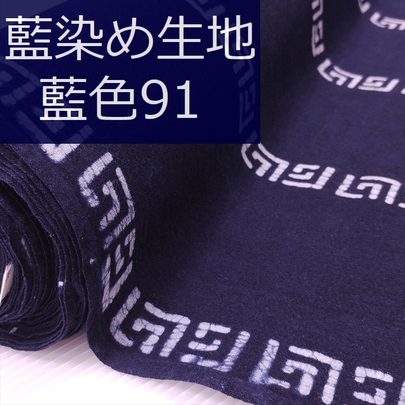 藍染め 生地 幅90cm 藍色91 雷文 藍印花布 1m単位 綿100% 片面染め ロットNo2308