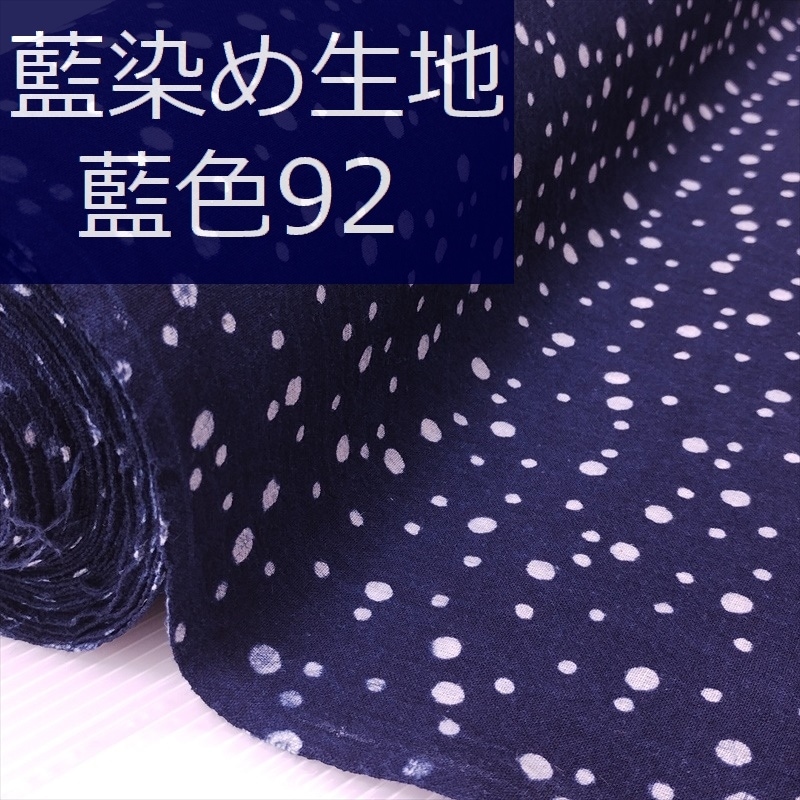 藍染め 生地 幅90cm 藍色92 霰小紋 藍印花布 1m単位 綿100% 片面染め ロットNo2308