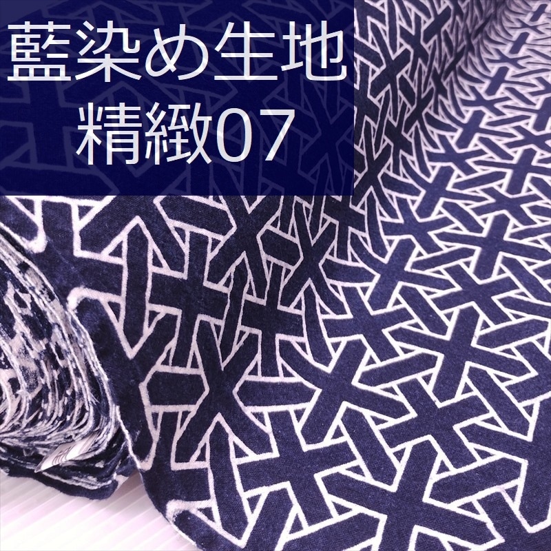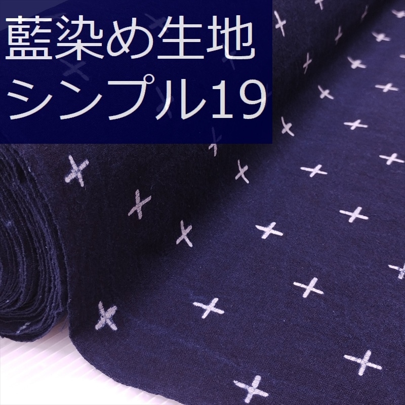 藍染め 生地 幅90cm シンプル19 十字絣 藍印花布 1m単位 綿100% 片面染め ロットNo2308