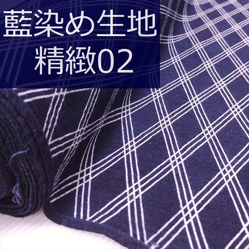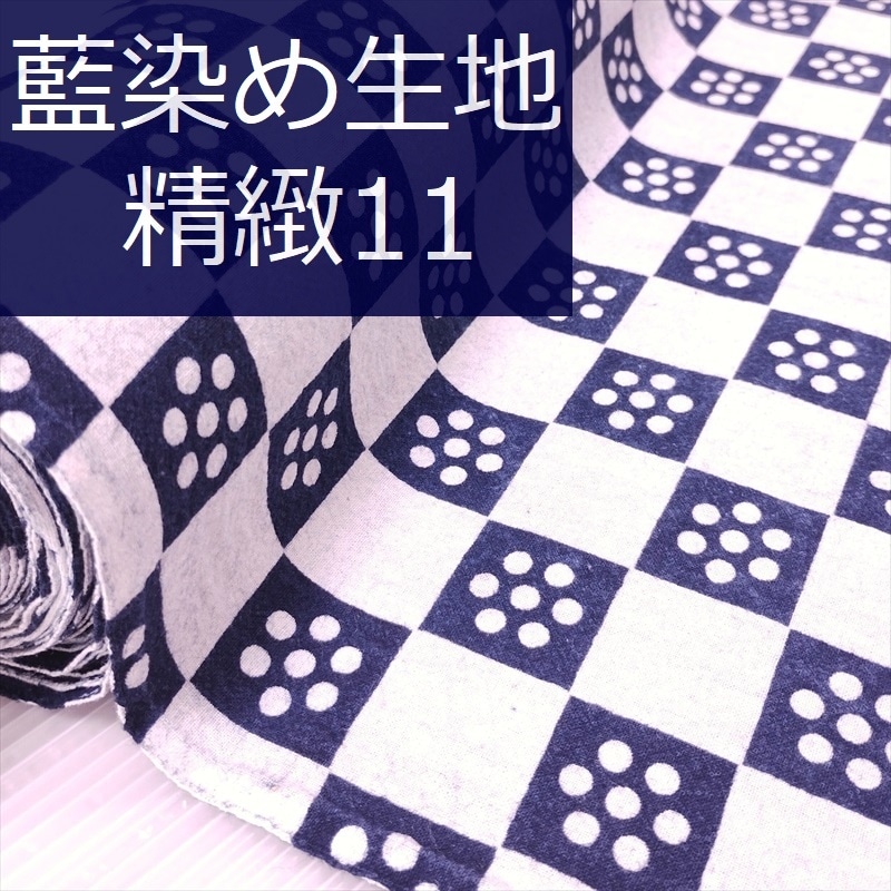藍染め 生地 幅90cm シンプル18 井桁絣 藍印花布 1m単位 綿100% 片面染め ロットNo2308