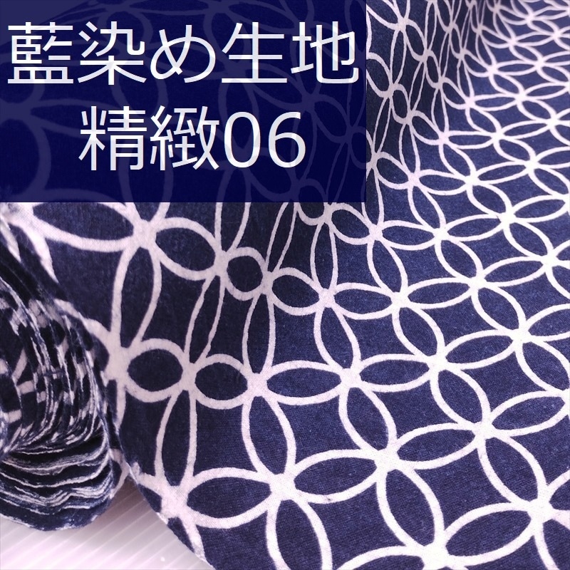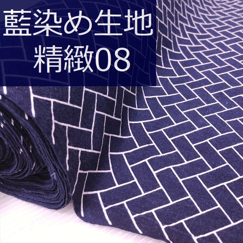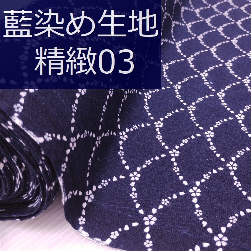 藍染め 生地 幅90cm 精緻08 檜垣文様 藍印花布 1m単位 綿100% 片面染め ロットNo2306