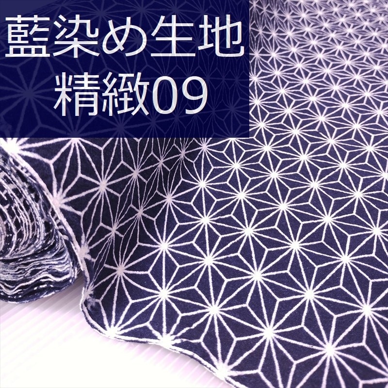 藍染め 生地 幅90cm 精緻09 麻葉文様 藍印花布 1m単位 綿100% 片面染め ロットNo2306