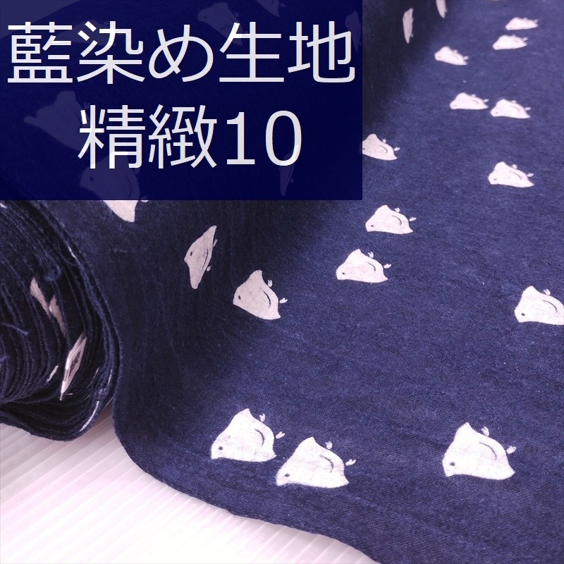 藍染め 生地 幅90cm 精緻10 千鳥文様 [古布調] 藍印花布 1m単位 綿100% 片面染め ロットNo2306