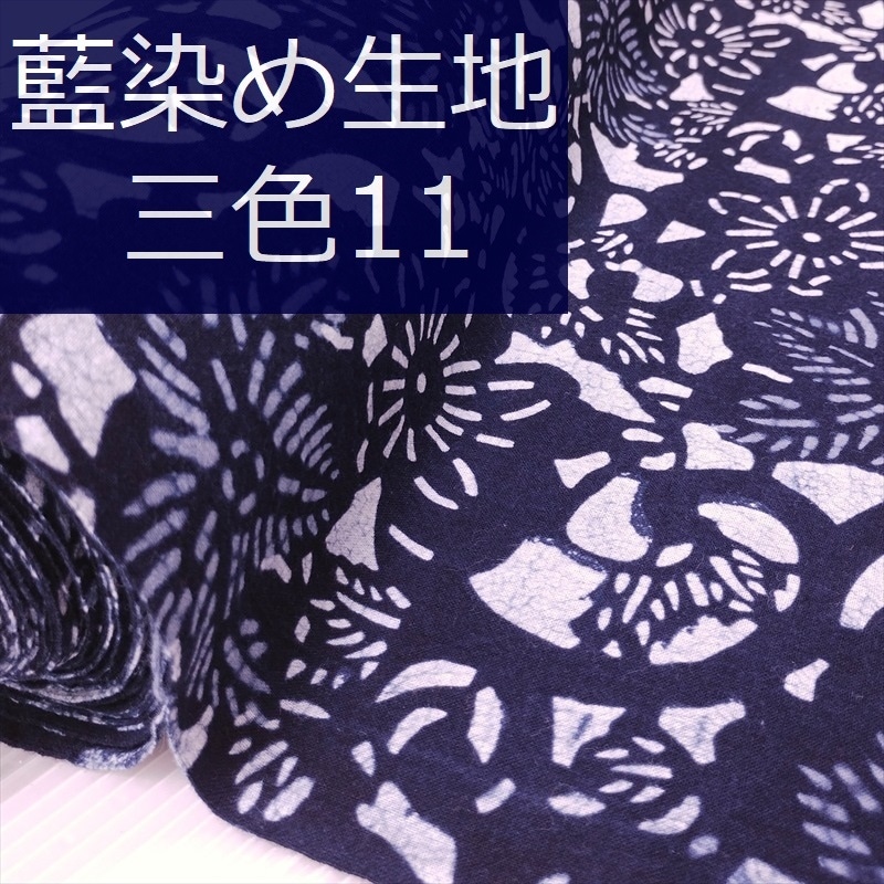 藍染め 生地 幅90cm 三色11 双大花 藍印花布 1m単位 綿100% 片面染め ロットNo2306