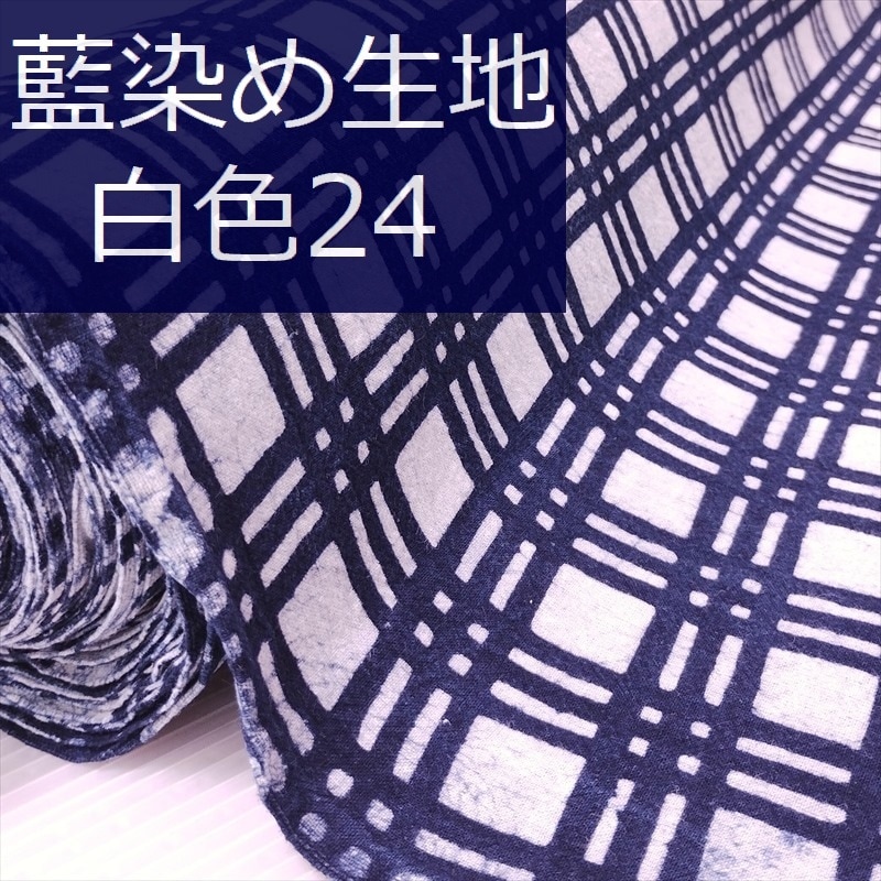 藍染め 生地 幅90cm 白色24 三重格子 藍印花布 1m単位 綿100% 片面染め ロットNo2308