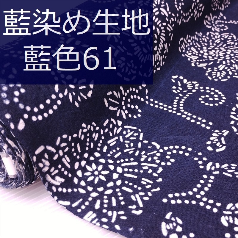 藍染め 生地 幅90cm 藍色61 点唐花 藍印花布 1m単位 綿100% 片面染め ロットNo1701