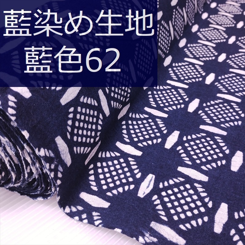 藍染め 生地 幅90cm 藍色62 光格子 藍印花布 1m単位 綿100% 片面染め ロットNo2012