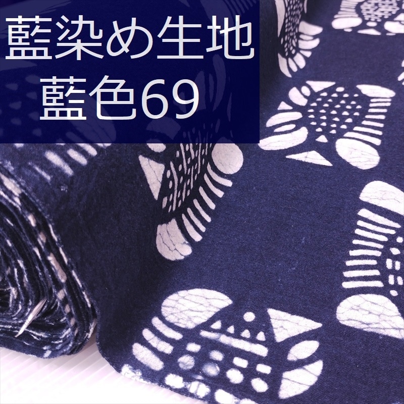 藍染め 生地 幅90cm 藍色69 影魚 藍印花布 1m単位 綿100% 片面染め ロットNo2209