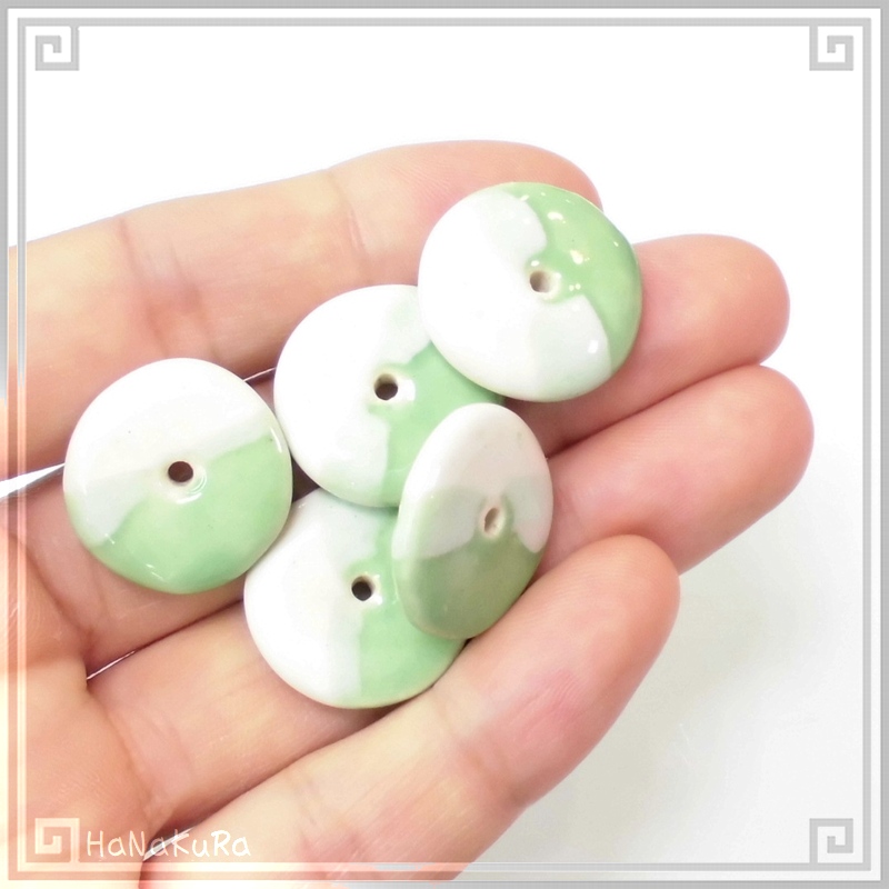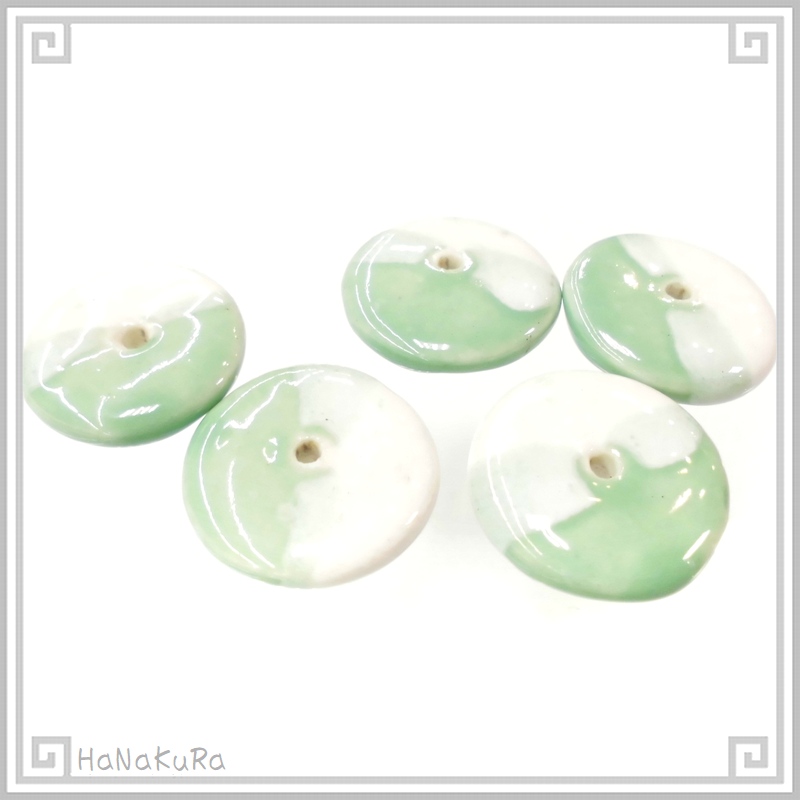陶磁器 ビーズ ドーナツ型 22×05mm 薄緑白色 手作り 1個