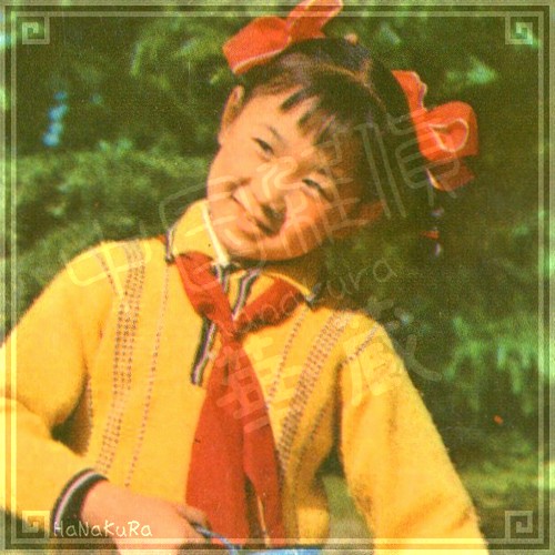 女の子がジョウロで水をあげている風景です。レトロ感を強く感じますね。