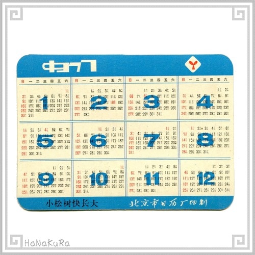 中国 カレンダー 1977年 09 小松木快長大 北京市日歴厰 コレクション カード