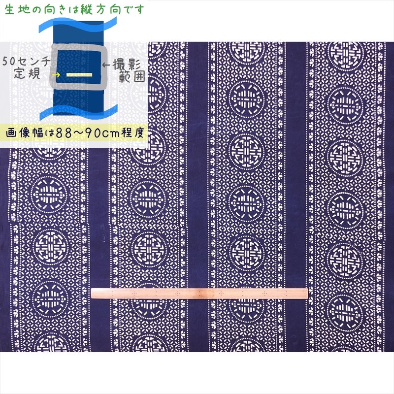 藍染め 生地 幅90cm 藍色08 十二支[訳あり] 藍印花布 1m単位 綿100% 片面染め ロットNo2504
