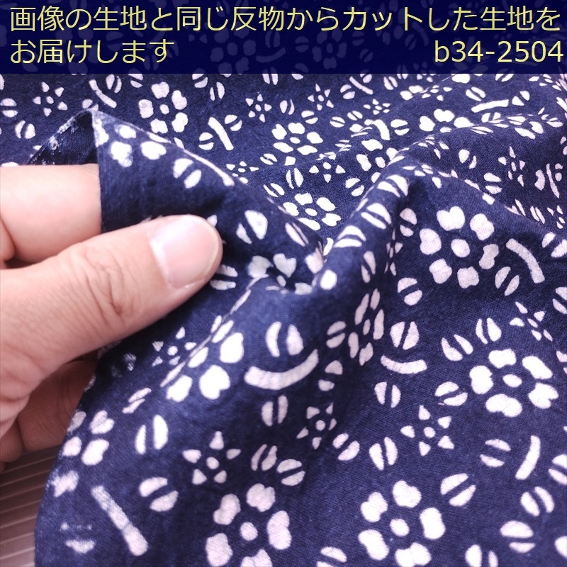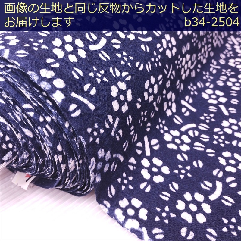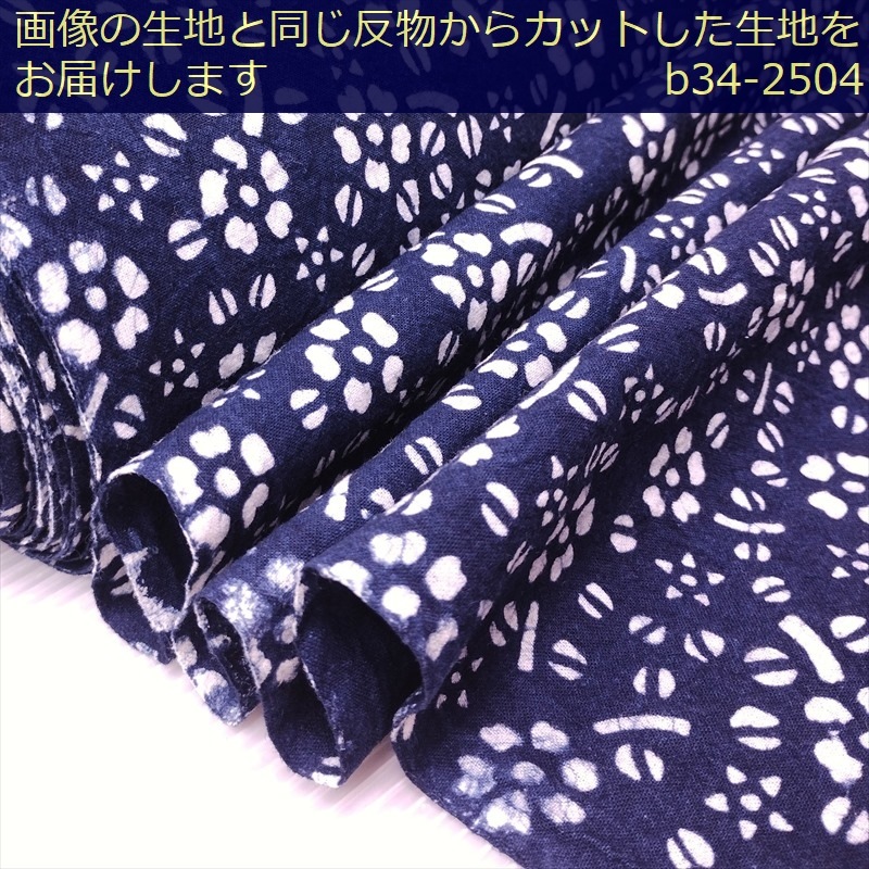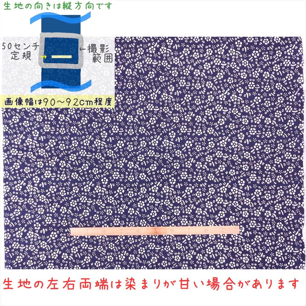 藍染め 生地 幅90cm 藍色34 花絨毯 藍印花布 1m単位 綿100% 片面染め ロットNo2504