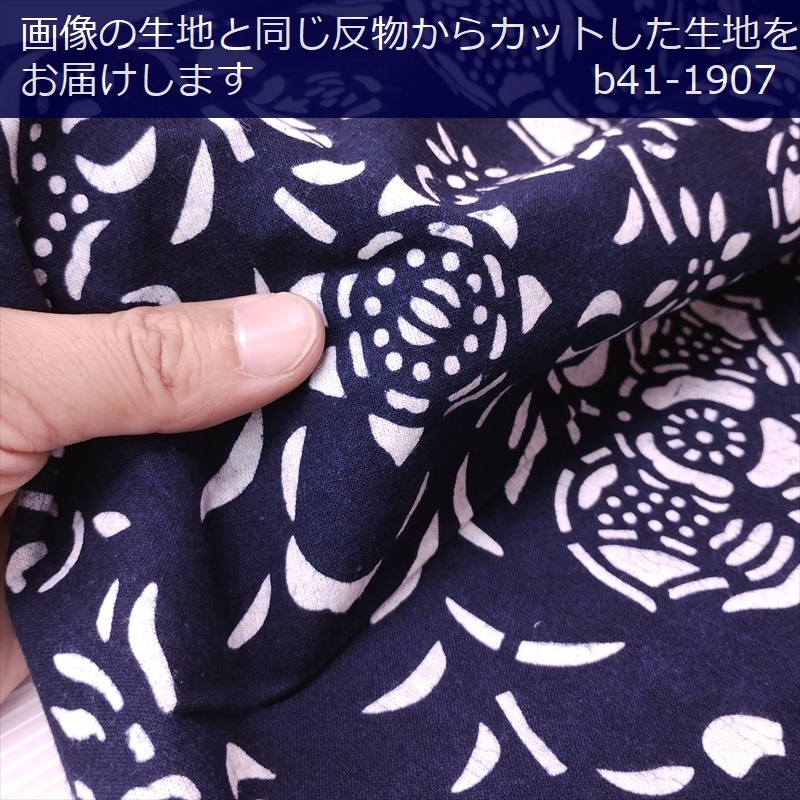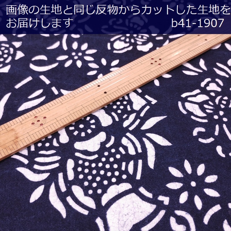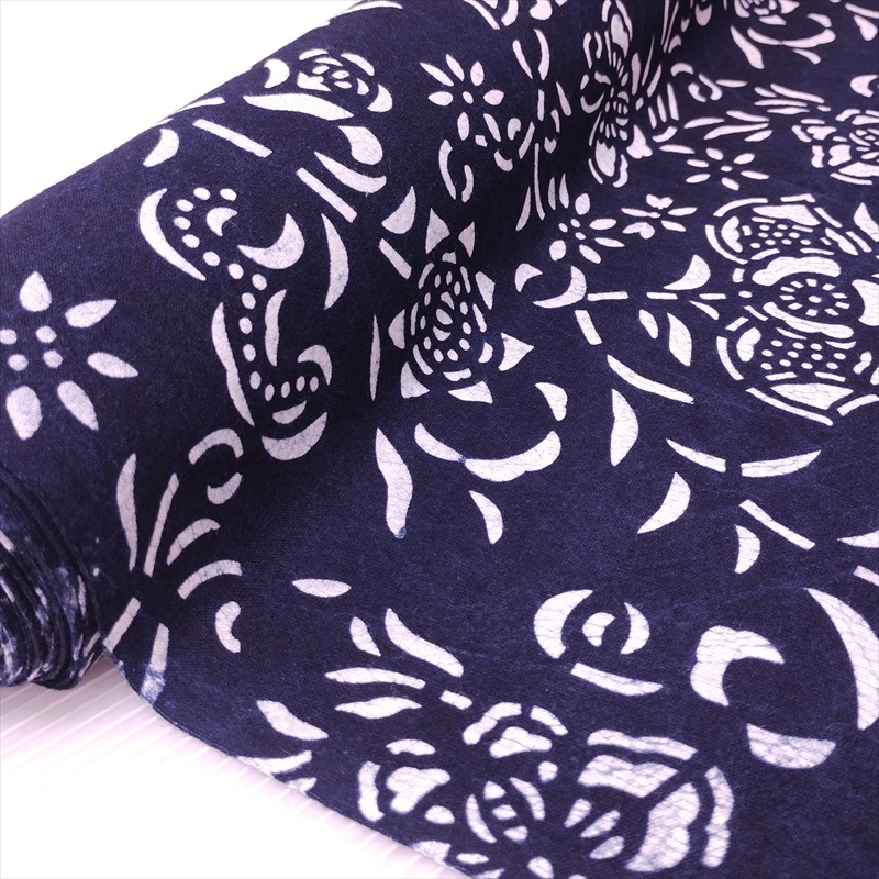 藍染め 生地 幅90cm 藍色54 大牡丹 藍印花布 1m単位 綿100% 片面染め ロットNo2012