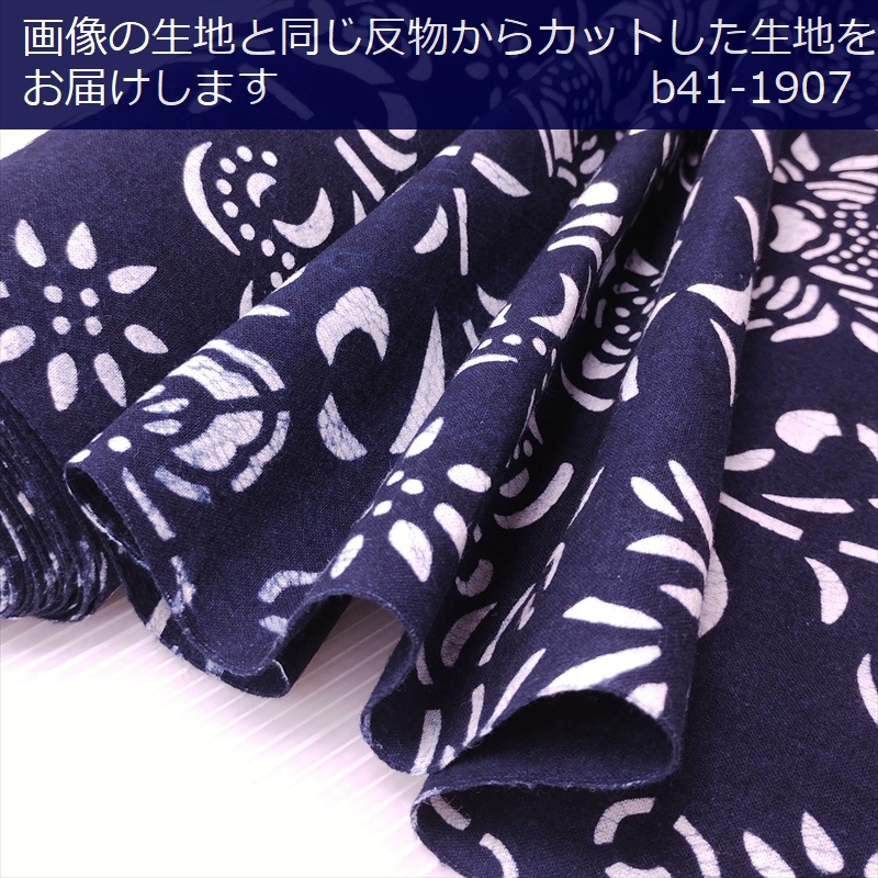 藍染め 生地 幅90cm 藍色56 菊華蝶 藍印花布 1m単位 綿100% 片面染め ロットNo1701