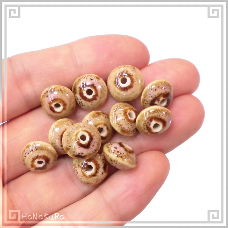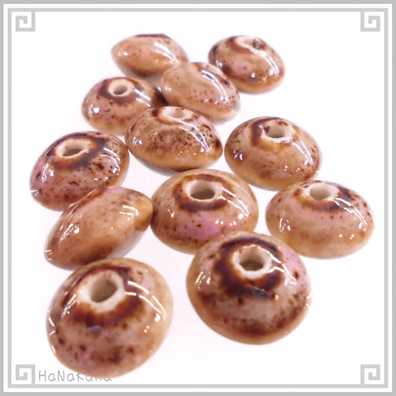 陶磁器 ビーズ そろばん型 12×08mm 赤茶色 手作り 1個