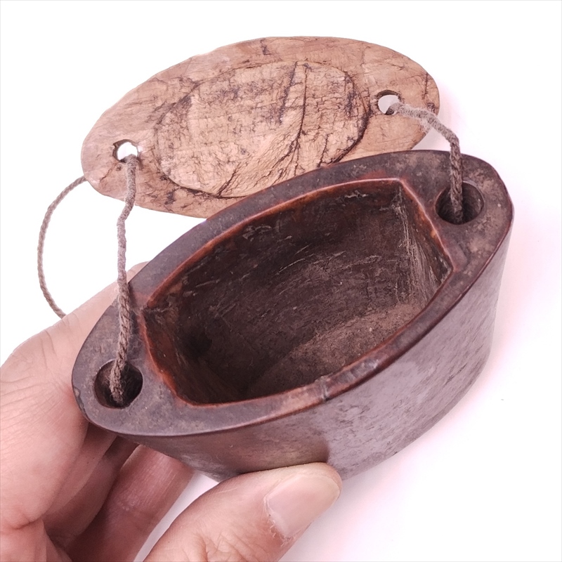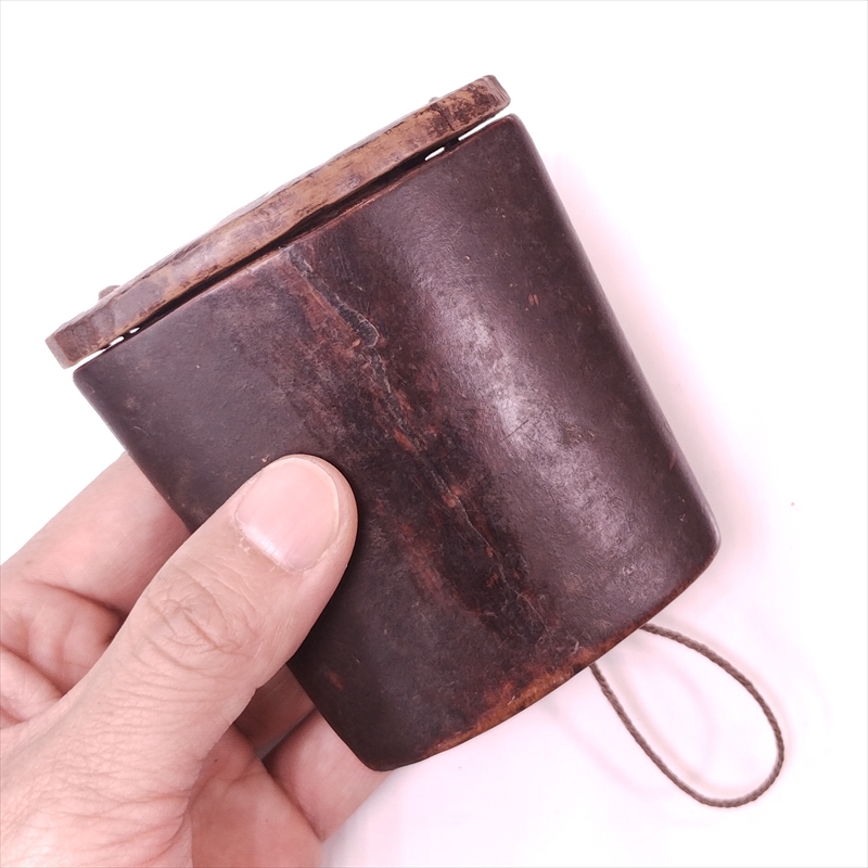 この入れ物は元々、刻みタバコ(煙草の葉を細かく砕いた物)を入れておき、吸いたいくなった時にこの箱から少量出し、キセルに詰めて吸うための煙草入れ、つまり中国のアンティーク喫煙具ですね。