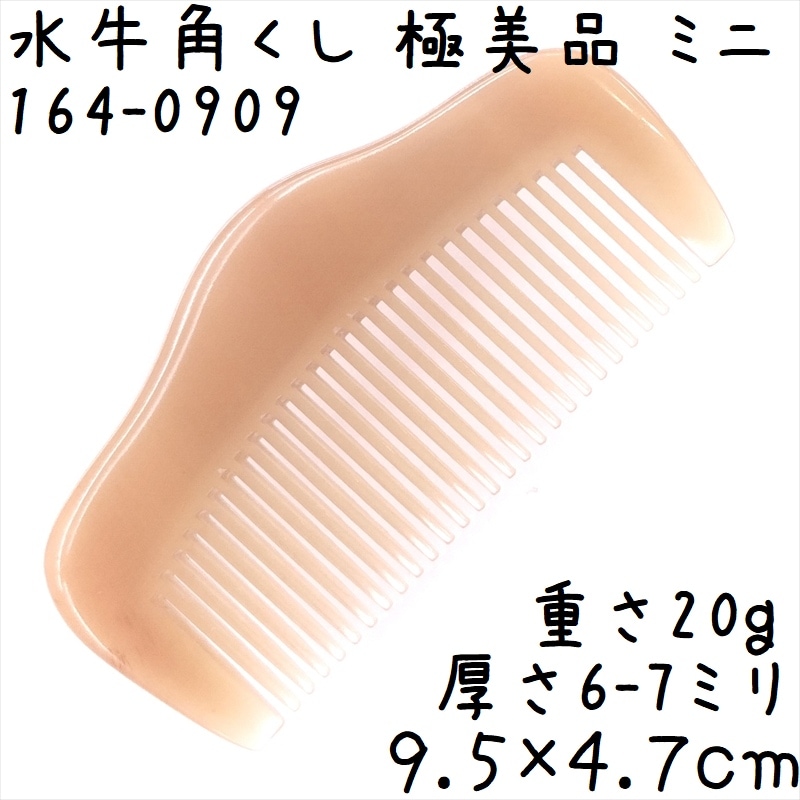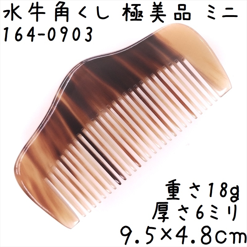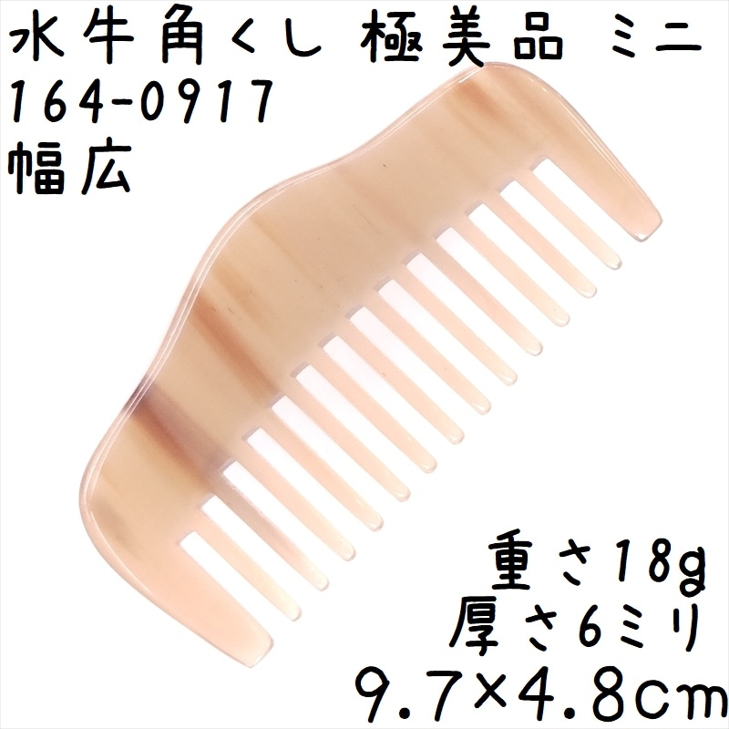 水牛角櫛 くし 上級品 9cmQ ミニ17 極美品 幅広 反りあり 黄牛角