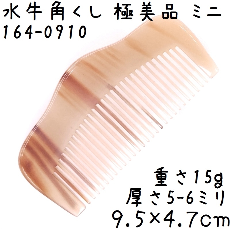 水牛角櫛 くし 上級品 9cmP ミニ16 極美品 幅広 反りあり 黄牛角