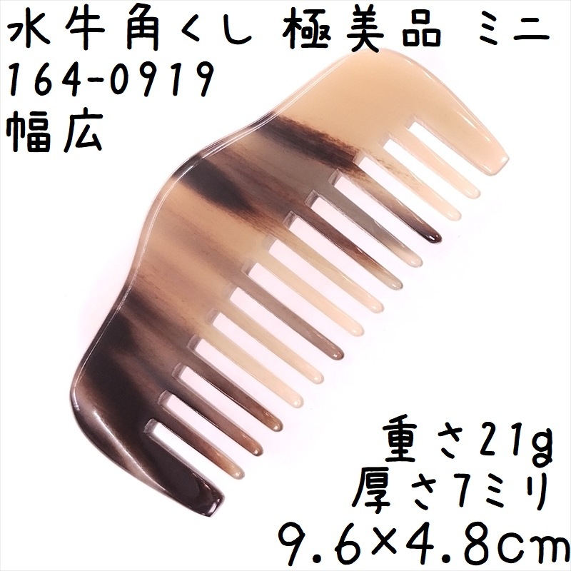 水牛角櫛 くし 上級品 9cmS ミニ19 極美品 幅広 反りあり 黄牛角