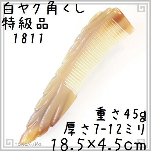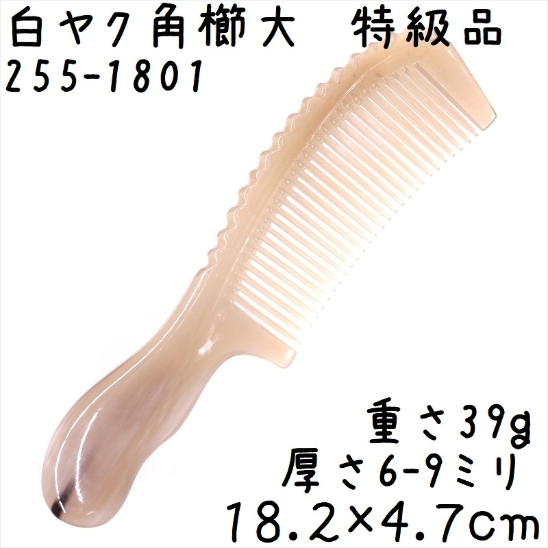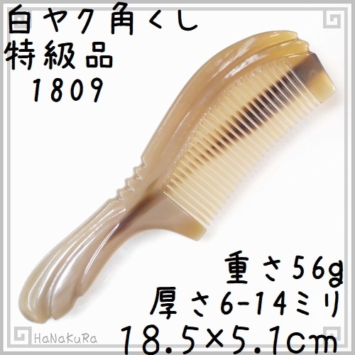 ヤクの角櫛 くし 彫刻工芸櫛 特級品 18cmA 大14 訳あり