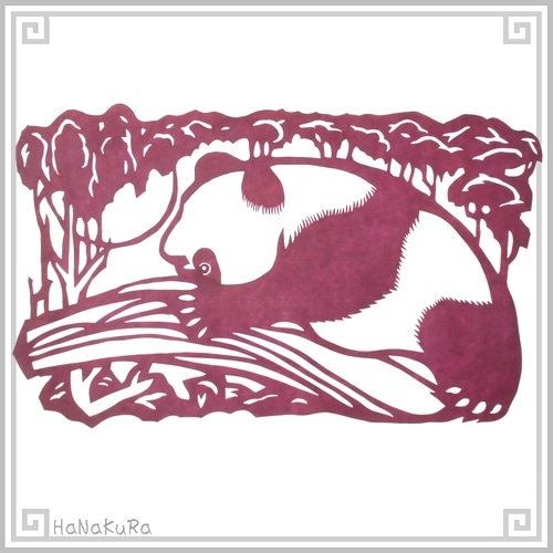 切り絵 剪紙 M201-01 上級品 水飲みパンダ 15×21cm