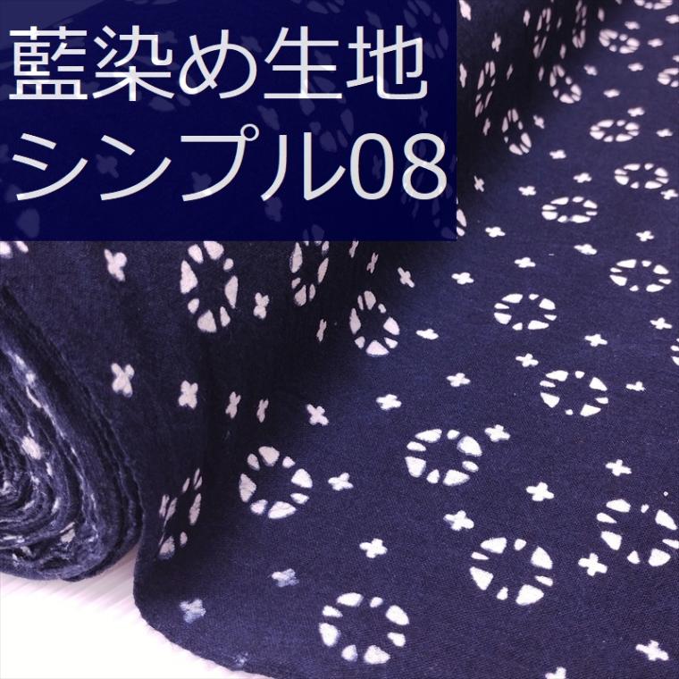 藍染め 生地 幅90cm シンプル08 ○+ 藍印花布 1m単位 綿100% 片面染め ロットNo1907