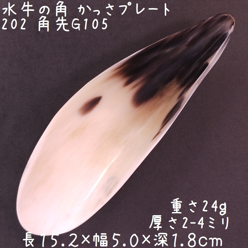 水牛の角 かっさ プレート 自然形 角先G105 白ヤク角 一点物 現品お届け
