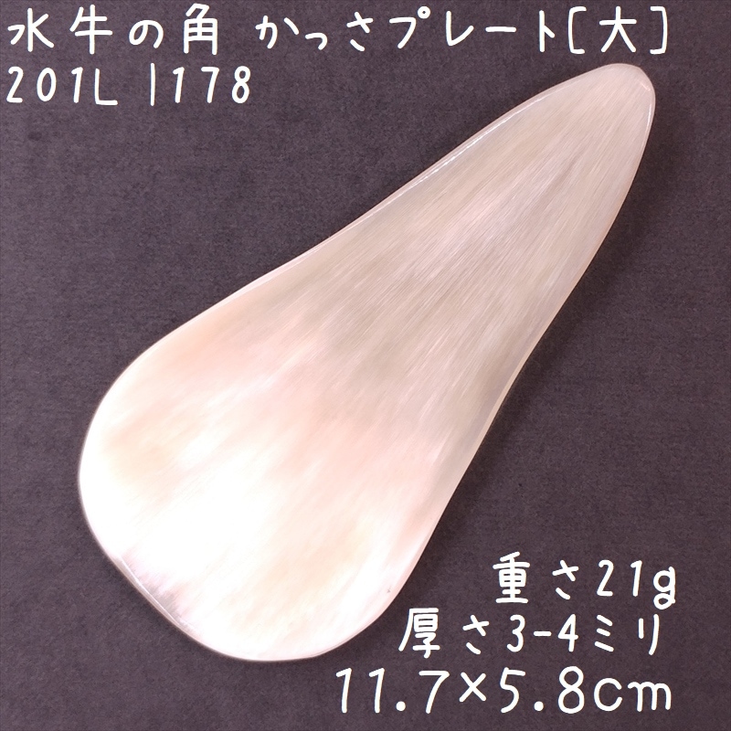 水牛の角 かっさ プレート 自然形 大I178 白ヤク角 一点物 現品お届け