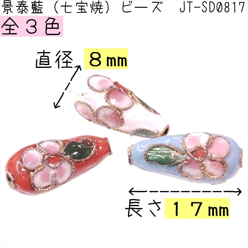 七宝焼 景泰藍 ビーズ 水滴 艶あり 直径8長17ミリ 1個