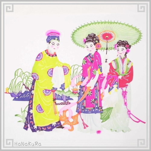 切り絵 剪紙 セットM11 工芸品 吉祥福童 20×30cm 12枚組