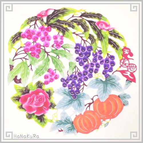 切り絵 老剪紙 セットA103 工芸品 セミアンティーク 鳥果豊収 23×23cm 2枚組