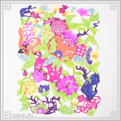 切り絵 老剪紙 セットA105 工芸品 セミアンティーク 花盛爛雅 22×23cm 2枚組
