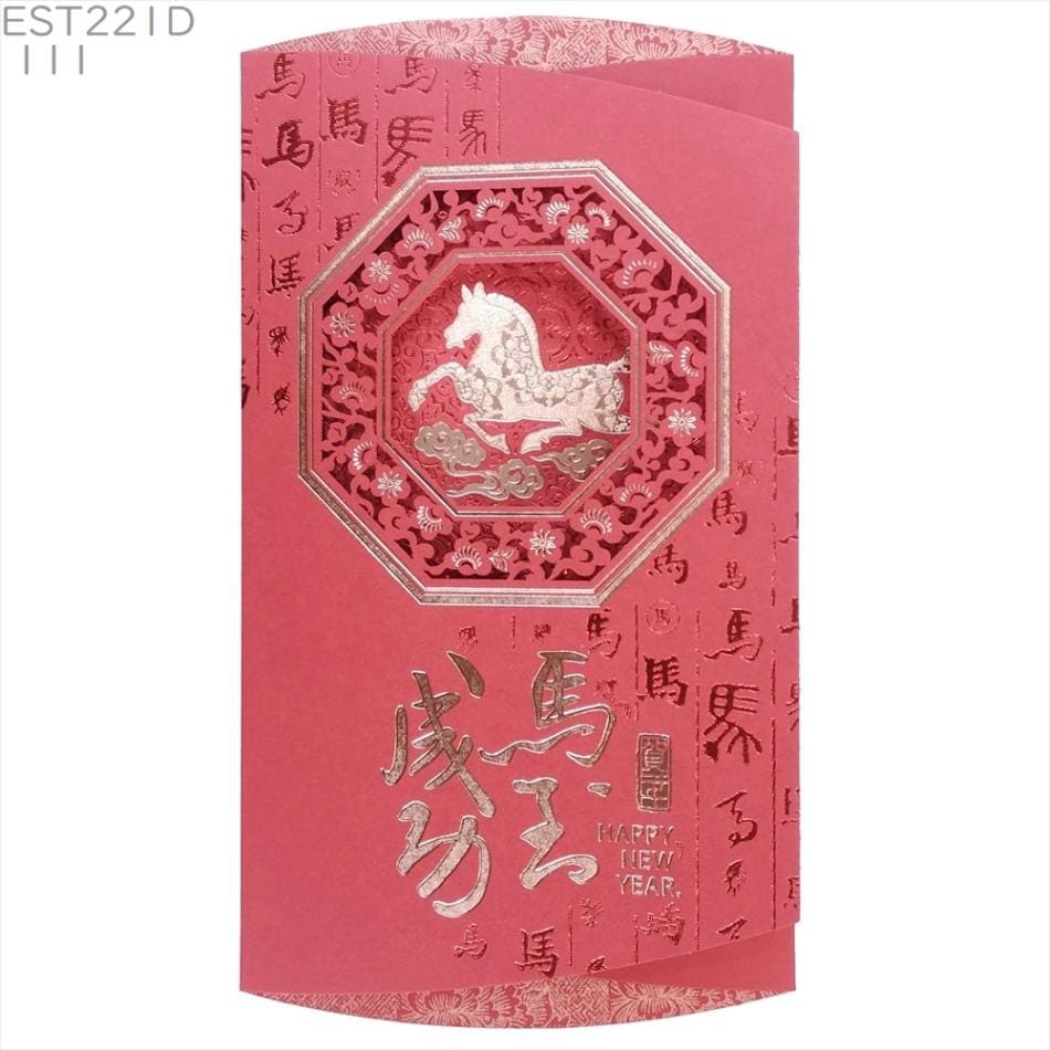 中国 春節 年賀カード 新年 年賀状 小D111[午ウマ馬干支柄] 剪紙枠馬 馬到成功 2026年専用 正月 グリーティングカード 賀年片