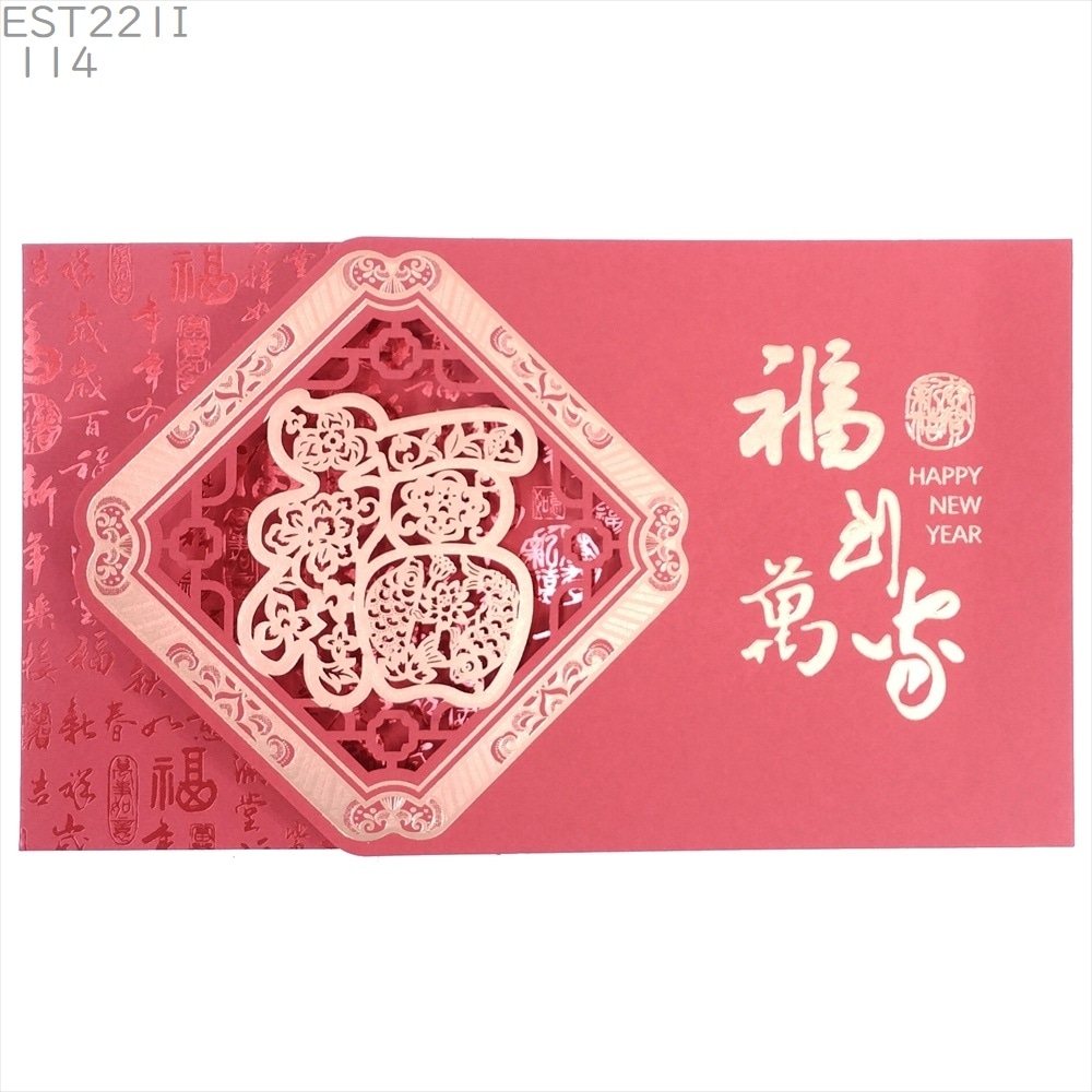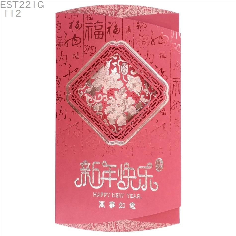 中国 春節 年賀カード 新年 年賀状 中I013 如意福窓 新年快楽 2026年 正月 グリーティングカード 賀年片