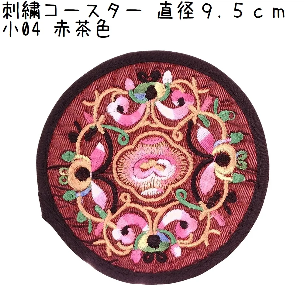 刺繍 コースター 円形 小04 赤茶色 直径9.5cm 1枚 中国 お土産