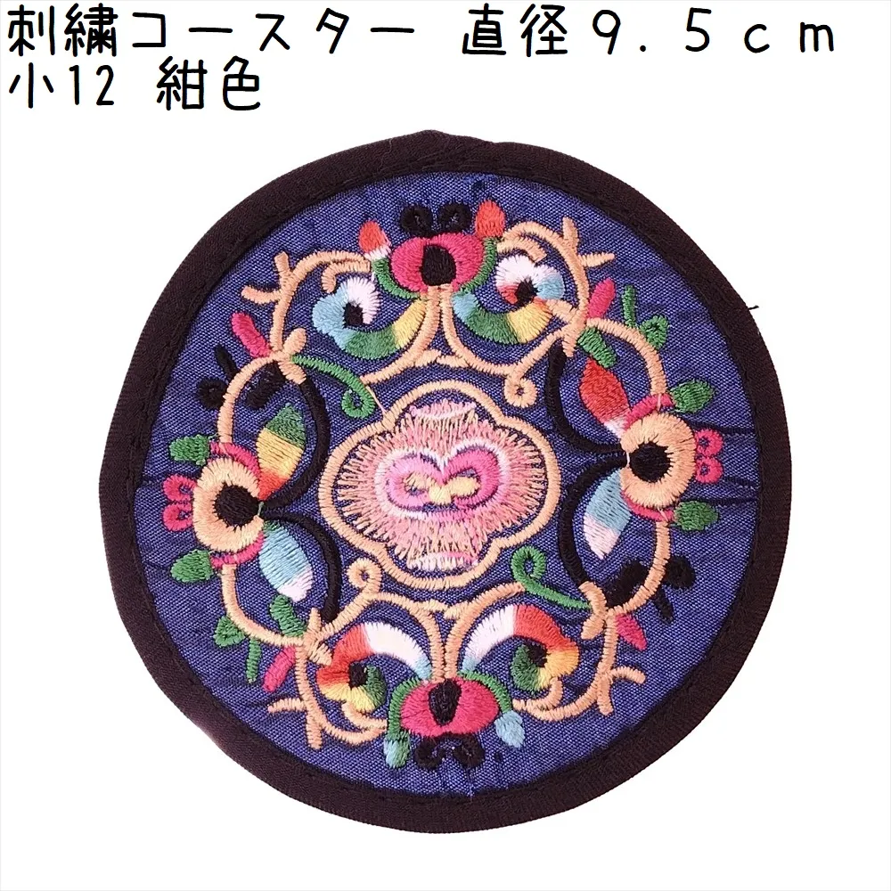 刺繍 コースター 円形 小12 紺色 直径9.5cm 1枚 中国 お土産