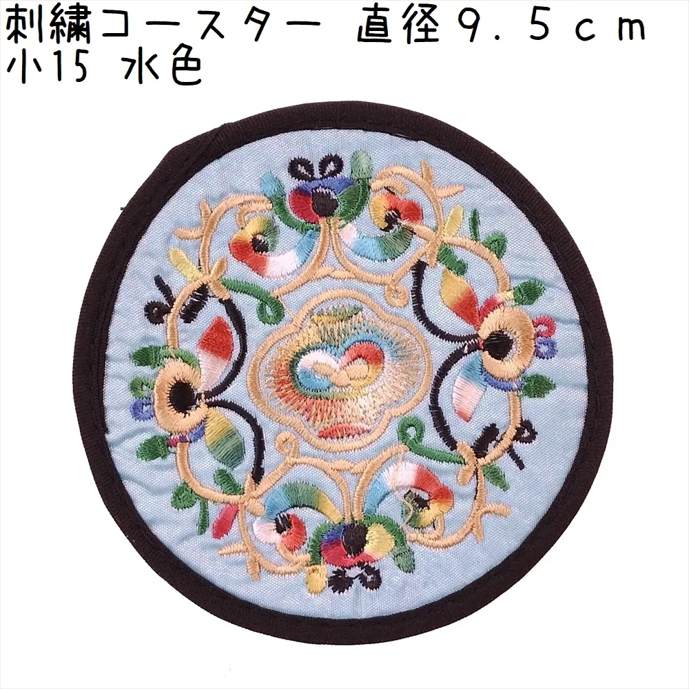 刺繍 コースター 円形 中15 水色 直径13cm 1枚 中国 お土産