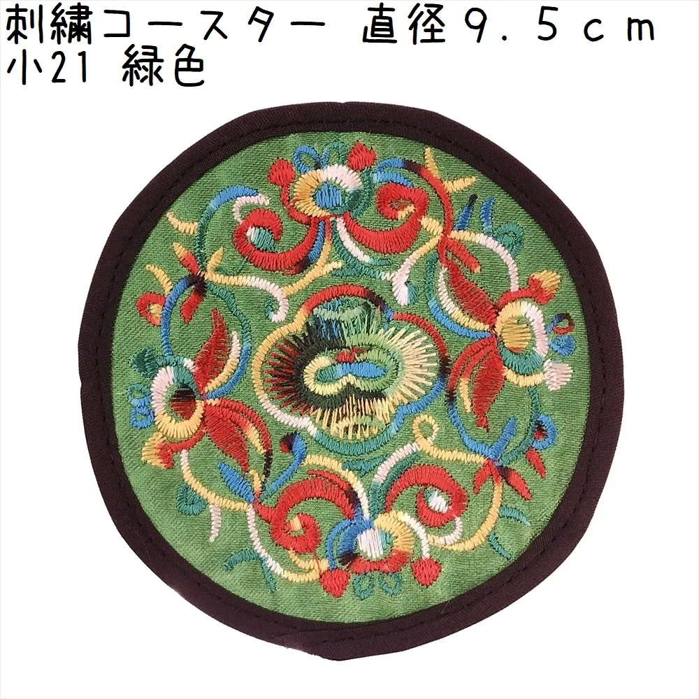 刺繍 コースター 円形 小21 緑色 直径9.5cm 1枚 中国 お土産