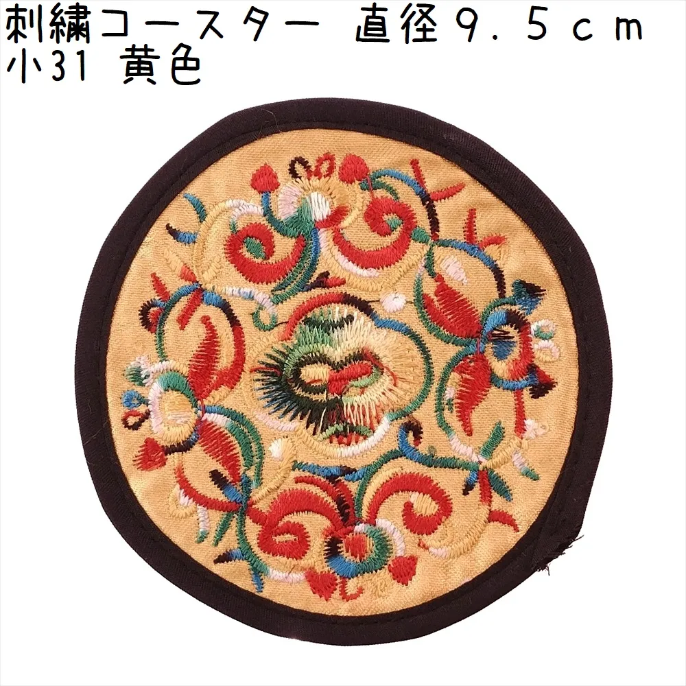 刺繍 コースター 円形 小31 黄色 直径9.5cm 1枚 中国 お土産